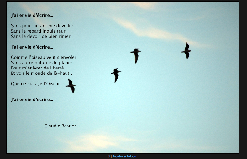 Cher lecteur. Je vous encourage à partager avec moi vos pensées quelles soient poétiques ou non.