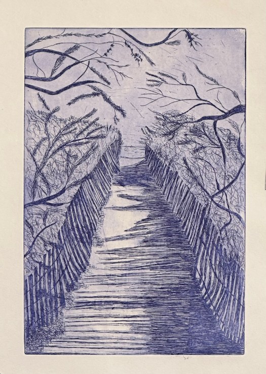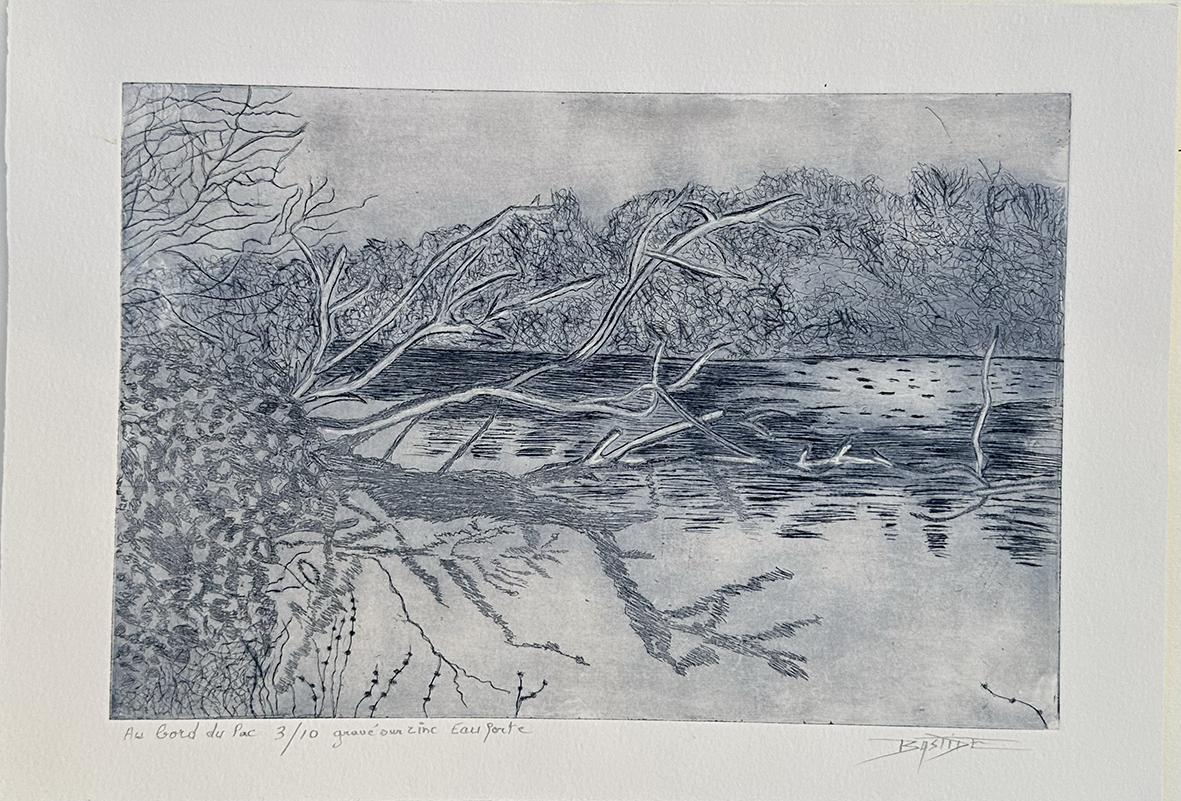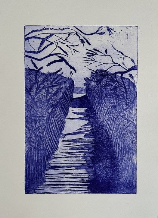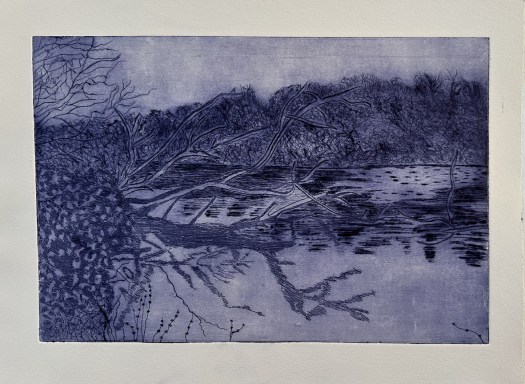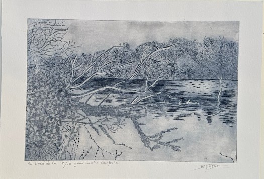 Les estampes suivantes sont deux versions des « paysages bleus » gravées à la pointe sèche sur cuivre ou zinc